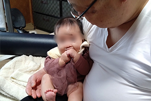 4月に生まれてふにゃふにゃしていたのが最近寝がえりも出来るようになって声を出して笑うのもホントにしっかりしてきました。