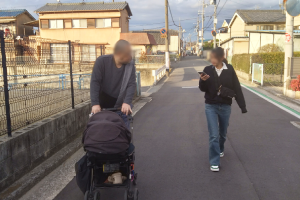 まったく歩くことのない日々なのでうーちゃんをベビーカーに乗せてお散歩いこうと提案し4人で近所をお散歩に行ってきました。