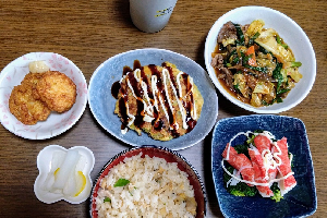 ご馳走ではありませんしふつーの家庭のご飯だと思いますが1食…