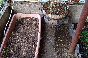 手前がよかった菜と名前のついた小松菜で奥が紫たまねぎでしたが早々にお亡くなりになりました。