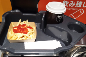 ポテトフライにチリソース&チーズがかかったものとコーラです。