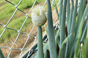調べてみるとネギ坊主?と言うものだそうで茎が伸びすぎてしまうと出来るそうでこれを取らないとネギの茎が硬くなるそうで…